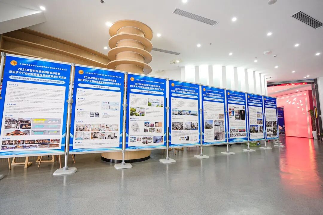 竞赛现场,同步启动沿沪宁产业创新带建筑行业工建联盟,立足“党建带工建、工建促党建”原则,以“信息互通、资源共享、市场联动、人才共育”为抓手,整合参赛企业工会资源,协力挖掘行业发展民生热点与需求,积极达成产业链、创新链、服务链的深度融合。竞赛活动还设置有创新成果展示区域,40余块展板集中呈现沿沪宁产业创新带建筑行业参赛企业信息及技术成果,这些展板后续计划巡回展出,进一步提升劳动竞赛的影响力及覆盖面。实物展区则成为企业对接的“会客厅”——上海贞启实业的沸石环保壁材、天补科技的修复材料等新产品集中亮相,有合作意向的企业当场交换信息、洽谈合作。现场,12家企业通过工会牵线达成合作意向并现场签约。